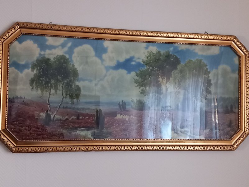 biete ein wunderschönes altes Bild mit Goldrahmen und Heidelandschaft , 1,20x0,60, umzugshalber, sehr gut erhalten 15 Euro