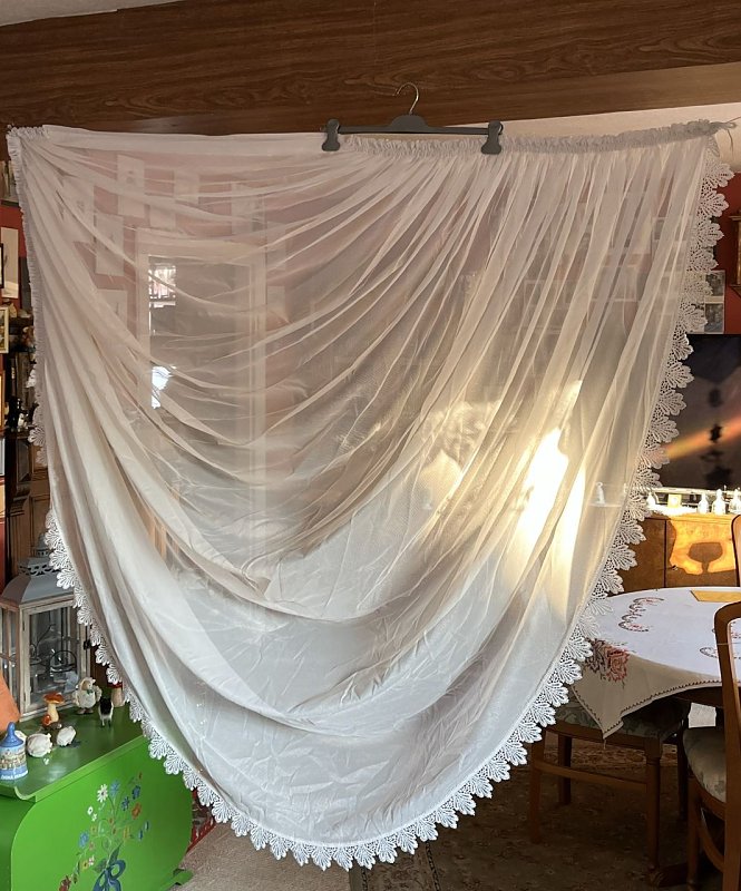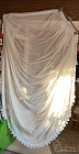 Seitenschals ca. 128 cm breit – aufgereiht und ca. 240 cm lang, die Seitenbänder sind je 164 cm lang