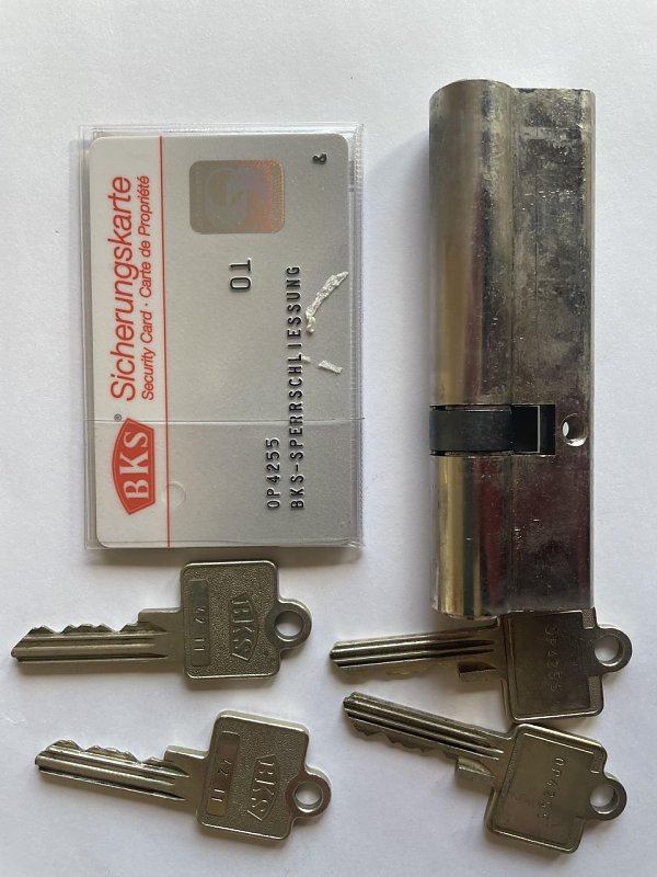 1. BKS Schließzylinder ca. 36/65 mit 4 Schlüsseln +