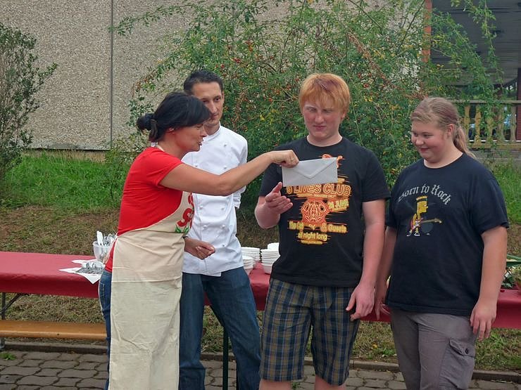Autor: khhBei verschieden Aktionen hatten sich Kenny und Anne immer wieder hervorgetan. Als Anerkennung durften Sie heute im HOC mit Sternkoch Ralf Kronmüller gemeinsam Kochen. Anschließend wartete SPD-Kreisvorsitzende Cornelia Kraffzick mit zwei Überraschungen auf. Zu einem gab es einen Büchergutschein für Kenny und Anne und das i-Tüpfelchen, ein Praktikum beim Sternekoch im Schlossrestaurant Sondershausen.