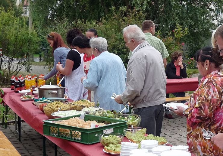 Gekocht wurde für die Bewohner des Hasenholzes und des Östertals, die, Teils vom Geruch des Grills angezogen(?), zahlreich erschienen waren. Gegrillt wurde Steaks, Putenfleisch und Forelle in Folie. Dazu wurden diverse Salate gereicht, wie Kartoffelsalat, Gurkensalat, Blattsalat und Tomatensalat.