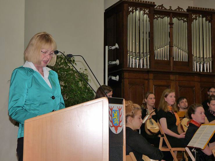 Nicht jeder konnte heute zu einer Feierstunde eine Kanzlerin begrüßen. Joachim Kreyer konnte es, aber nur im übertragenen Sinne. Trotzdem bekam er viel Beifall genau wie Madlen Kanzler, die im Begrüßungsmusikstück als Solistin dabei war.