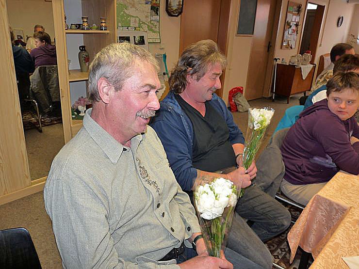 Nicht um sonst als Erste bekamen die beiden Fahrer des Transporters einen Strauß Blumen überreicht, denn sie fahren die Behinderten fast täglich ehrenamtlich, ob auf Arbeit, Schule oder zu notwendigen Arztbesuchen.