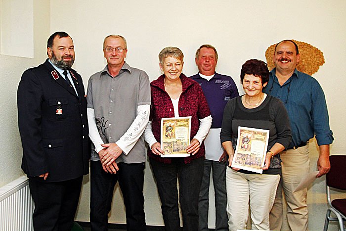 Für besondere aktive Mitarbeit im Verein wurden die Gründungsmitglieder des Feuerwehrvereins Himmelsberg e.V. Martina Cisz, Bärbel Samper, Manfred Güldenzopf und Andreas Fritsch von dem Vorstandsmitglied des Kreisverbandes, Dirk Hempel, mit der Ehrennadel des Kreisfeuerwehrverbandes ausgezeichnet.