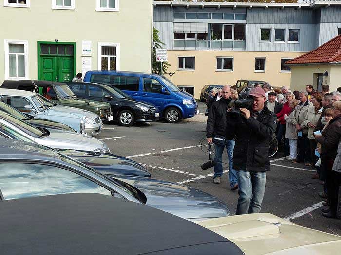 Hauptamtsleiter Stefan Schardt machte den Moderator mit der Aufgabe vertraut. Natürlich war die Aufgabe nicht leicht. Denn der Moderator stand vor der Aufgabe, aus 10 auf dem kleinen Parkplatz aufgestellten Autos durch Glück und Menschenkenntnis 10 Personen zu den Autos zu zuordnen, denen die Fahrzeuge gehören.