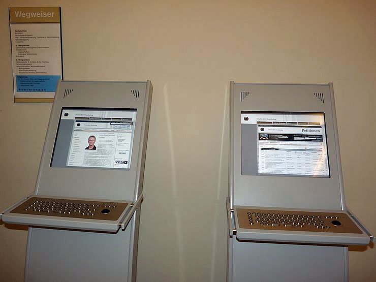 Auf zwei Computerterminals können Filme, multimediale Anwendungen und der Internetauftritt des Deutschen Bundestages angeschaut werden. Weiterhin liegt Informationsmaterial zur kostenlosen Mitnahme bereit.