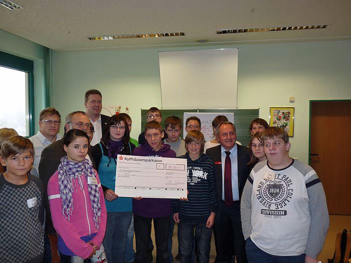 Heute am Mittag fand im Beisein des Schirmherrn des Projektes, Landrat Peter Hengstermann (CDU), eine Scheckübergabe durch den Vorstandsvorsitzenden der Kyffhäusersparkasse statt. Es wurde ein Scheck in Höhe von 1.500 Euro übergeben., im Förderzentrum in Sondershausen statt.