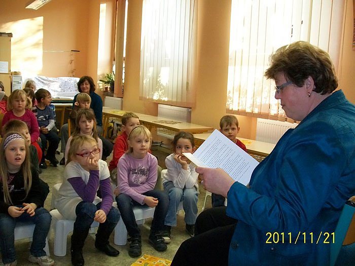 Sie las den Mädchen und Jungen Geschichten aus dem Buch Erzähl mir vom kleinen Angsthasen von Werner Heiduczek. Die Kinder amüsierten sich über die humorvollen Kurzgeschichten und bedankten sich mit Programmen und Präsenten. Frau Holbe erwiderte den Dank und überreichte Obst und Süßigkeiten.