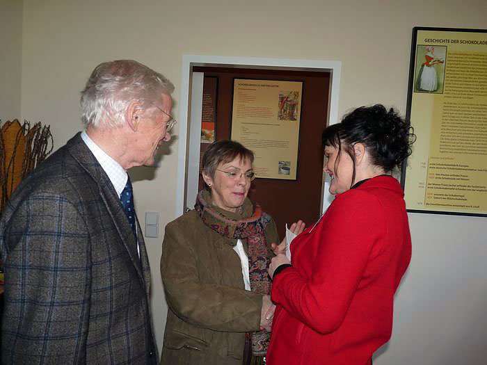 Reinholz kündigte an, er werde prüfen, ob man die Goethe Schokoladentaler Manufaktur GmbH mit nach Berlin zur Messe nehmen kann. Auch wenn man jetzt schon mit Feinkost Käfer einen sehr renommierten Kunden hat, neben vielen Hotels in ganz Deutschland.