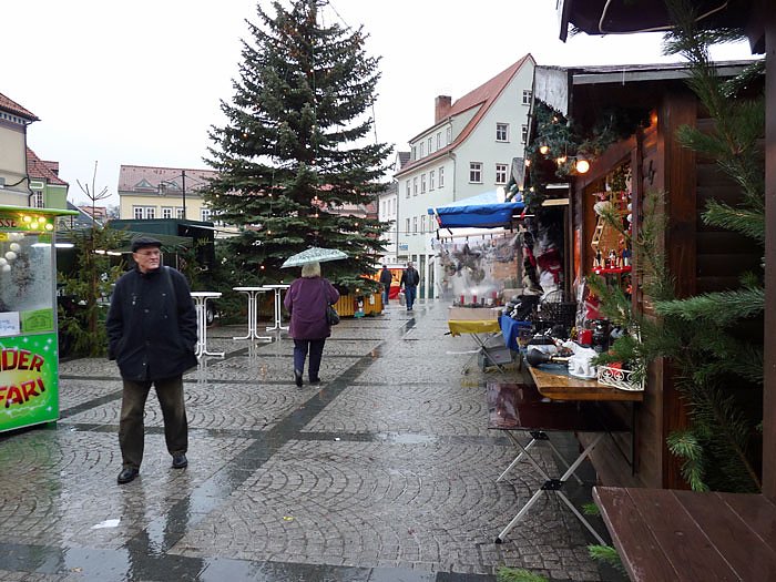 Sonst sind Märkte eigentlich immer ein guter Ort um Neues zu erfahren, aber der Weihnachtsmarkt in Sondershausen zur Mittagszeit war heute bei strömendem Regen kein Treffpunkt, und auch kein Ort zum lange plauschen. Selbst der kleine Markt in der Hauptstraße lockte nur einige Gäste auf den großen Markt hoch, um sich wenigstens mit einem Glühwein zu erwärmen. So war auch der Banküberfall hier kein Gesprächsthema.