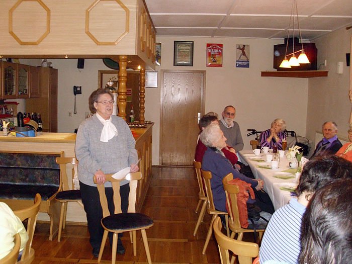 Die Vorsitzende vom WB 4, Elfriede Ullmann, legte Rechenschaft über 21 Jahre ihrer ehrenamtlichen Tätigkeit als Vorsitzende des Wohnbezirkes ab und ließ die vielen Jahre und das Erlebte noch einmal Revue passieren. Nun gibt sie mit ihren stolzen 80 Jahren den Vorsitz der Wohnbezirksgruppe ab, bleibt uns aber hoffentlich noch recht viele Jahre bei guter Gesundheit erhalten.