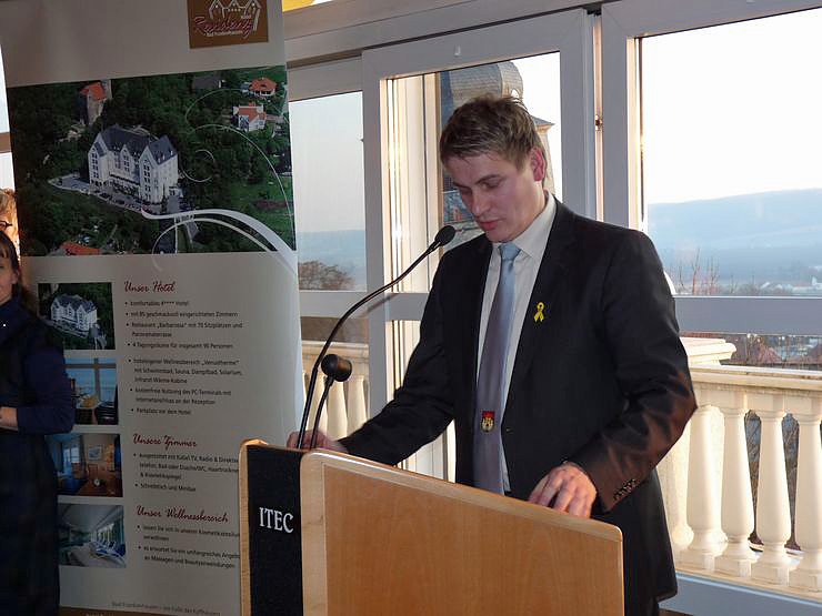 Danach ergriff Lars Bachmann, Eigentümer der Bachmann-Hotelgruppe das Wort. Das Residenz ist eines von mehreren Hotels dieser Hotelgruppe in Thüringen. Seit der Übernahme 2009 sei man mit der Entwicklung hoch zufrieden. Man erreichte eine Umsatzsteigerung von 25 Prozent und die Zahl der Besucher ist um 7.000 gestiegen.