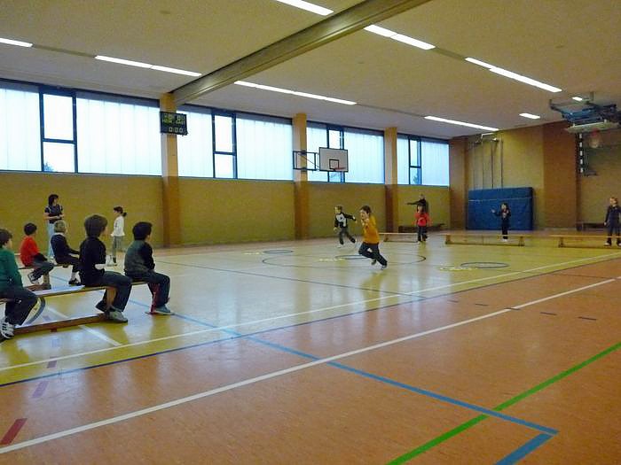 Frei nach dem Motto, wenn der Kopf rechnen soll, muss er ert mal gut durchblutet sein, gab es eine kurze aber intensive Aufwärmrunde. Danach teilte man sich in Gruppen auf. Die Klassenstufen 1 und 2 waren an sechs Stationen im Wechsel alle 30 Minuten in Gruppen aktiv.