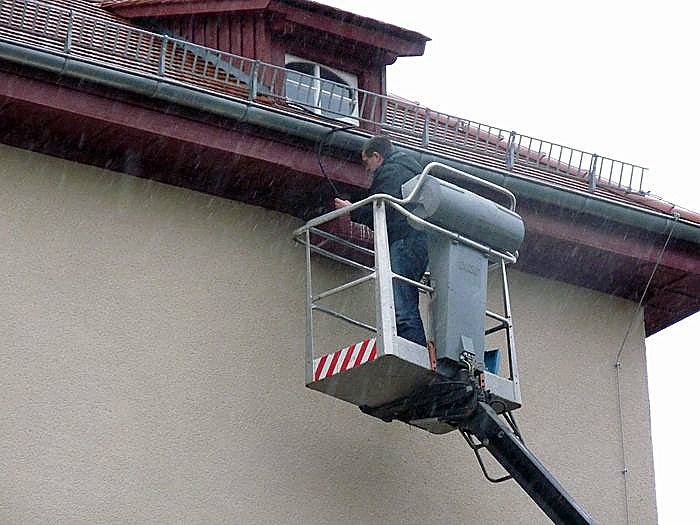 In Zusammenarbeit mit der unteren Naturschutzbehörde des Kyffhäuserkreises, Thomas Schlufter, wurden Nistmöglichkeiten geschaffen. An einer solchen Stelle wurde gestern noch rechtzeitig vor Beginn der Brutsaison eine Kamera installiert. Unterstützung erhielt der Förderverein von der Firma Brandschutz Schielke. Denn ohne Hebebühne wäre das Ganze nicht zu schaffen gewesen.