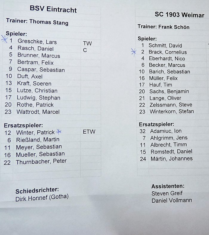 Im Gegenteil ab Mitte der zweiten Hälfte wurde Weimar aktiver und hielt sich bald mehr vor dem Tore der Eintracht auf. Die letzen 10 Minuten gab es gar drei dicke Chancen für Weimar und man musste bald schlimmes befürchten.