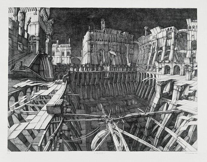 Érik Desmazières - Verlassener Platz II, 1982 - Radierung und Aquatinta - 49,5 x 64,5 cm - Sammlung des Künstlers - © VG Bild-Kunst Bonn, 2012