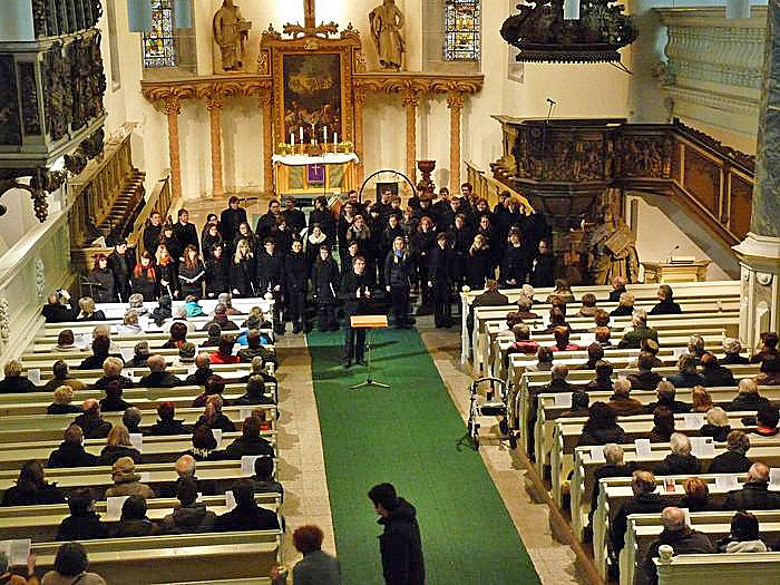Unter der musikalischen Leitung von Christian K. Frank und Chris Arne Puschnerus war ein Chorkonzerterlebnis der besonderen Art zu hören. Eigentlich waren jungen Sängerinnen und Sänger zu einem Casting der besonderen Art in die Landesmusikakademie nach Sondershausen gekommen. In einem zweitägigen Workshop wurden die jungen Sängerinnen und Sänger darauf vorbereitet und ausgesucht, im Landsjugendchor Thüringen singen zu dürfen. Rund 50 Sängerinnen und Sänger hatten die Möglichkeit, hier hohes Können zu zeigen.