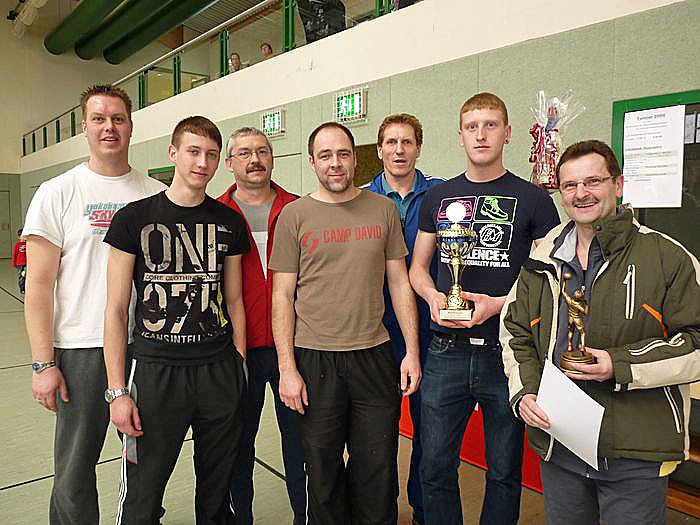 Der Pokalsieger des letzen Jahrs war auch wieder der diejährige Sieger, SV Grün-Weiß, die sich nachder Siegerehrung vor kn präsentierten.
