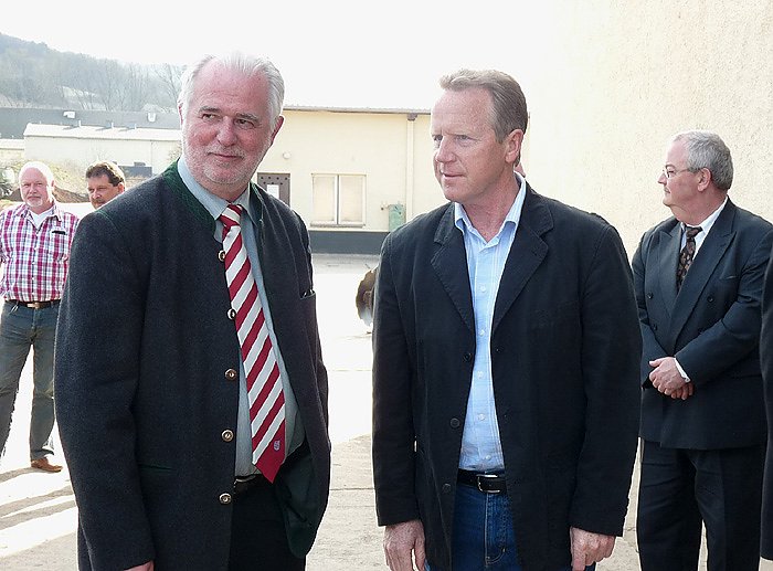 Landwirtschaftsminister Jürgen Reinholz (CDU) wurde im Unternehmen von Geschäftsführer Hartmut Thiele (re.) empfangen. Zuvor hatte Landrat Peter Hengstermann (CDU) den Minister im Landkreis begrüßt. Auch ein kleines Geschenk hatte er für den Minister, ein Buch über Ronald Paris, dem bekannten Maler, der hier aus Berka stammt.