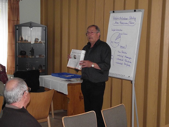 Der Fahrlehrer Herr Peter Scheve sprach über die Probleme bei der Altersklasse über " 50 ". Sehr interessant und lehrreich verstand er die einzelnen Schwerpunkte wie zum Beispiel das Fahren unter Medikamenteneinwirkung, bei gesundheitlichen Störungen wie schlechtes Hören und Sehen aber auch das Denk- und Reaktionsvermögens sowie die Beweglichkeit anzusprechen.