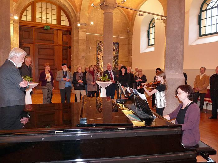 Prof. Dr. Eckart Lange bedankte sich beim Künstler, dass er die Ausstellung dieser Kunstwerke ermöglichte. Dank ging auch an den ehemaligen Kulturamtsleiter Helmut Köhler, der auf die Idee kam, die Werke nach Sondershausen zu holen.