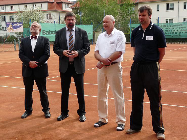 Wenn es um Nachwuchsgewinnung geht, ist es immer gut, wenn man die Politik auf die Probleme aufmerksam macht. Landrat Peter Hengstermann (li.) sagte bei der Begrüßung, Tennis sei längst kein elitärer Sport mehr. Bürgermeister Joachim Kreyer (beide CDU) bestätigte, dass leider viele Vereine Sorgen bei der Nachwuchsgewinnung haben.