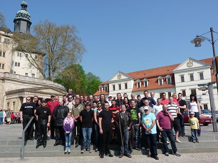 Es waren schon wahre "Schlachtschiffe" die sich da gestern auf dem Markt von Sondershausen gezeigt haben. Besonders viele Exemplare gab es aber aus der Motorradgilde. Vom Anbaumotor am Fahrrad bis zu einer Triumph aus dem Jahre 1927 war alles dabei. Natürlich auch stark vertreten die Kultmarken aus DDR-Zeiten, wie MZ, AWO und Java. Bei schönstem Wetter hatten sich ab 09:00 Uhr bis zur Abfahrt nach 11:00 Uhr auch zahlreiche Besucher eingestellt.