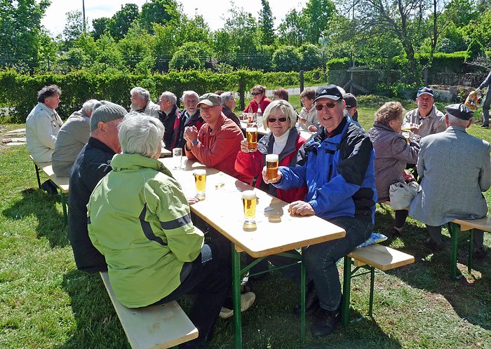 Und siehe da, alles nur gestellt. Der Arbeitseinsatz war ein getarnter Vatertagstag. Statt zu arbeiten wurde der Feiertag bei Bier, Schnaps und Wein gefeiert. Und wenn man die vielen Frauen sah, konnte es sogar eine verspätete Muttertagsparty sein.