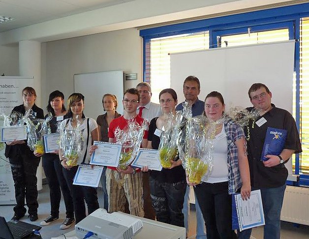 Der Projektverbund hat dazu Vertreter von Arbeitsagentur, Jobcenter, Kammern, Jugendamt, Bildungsträgem und Schulen eingeladen. Die erlangten Kompetenzen, u.a. Spracherwerb, Fachkenntnisse und Praktische Erfahrungen werden ihnen gebündelt in Form des "Europass Mobilität" feierlich übergeben. Die Übergabe erfolgte durch Projektmitarbeiterin Marlene Dupius, Olaf Burchardt von der Arbeitsagentur und Hartmut Bärwinkel vom Sondershäuser Bildungsverein e.V..