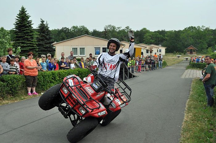 Egal ob Basteln, Stockbrot backen, Buttons herstellen, Reiten, Theater spielen, Skateboard fahren, Fahrradparcours oder Ratespiele - es war für jeden etwas dabei. Highlights in diesem Jahr waren neben einen Mega-Kicker, bei dem die Kinder in einem überdimensionalen Tischkicker selbst die Fußballer waren, auch die atemberaubende Stuntshow von Mike Auffenberg. Dieser zeigte auf dem Quad und seinen verschiedenen Motorrädern spektakuläre Tricks. Höhepunkt seiner Show war ein Sprung über 2 Autos und ein Quad.