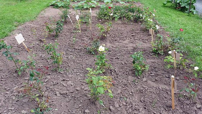 In einem der leerstehenden Gärten haben die Vereinsmitglieder des Kleingartenverein einen Schaugarten eingerichtet. Natürlich stehen dort auch Rosen.