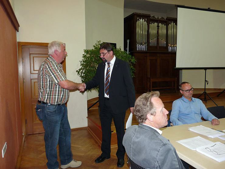 Stadtratsvorsitzende Dr. Christine Kiezer hatte vor her bekannt gegeben, dass das am heutigen Tag älteste Stadtratsmitglied dem Bürgermeister den Amtseid abnehmen musste und das war Dieter Hotze (VS). Im Anschluss gab es eine Gratulationsrunde der Stadträte und Ortsteilbürgermeister.
