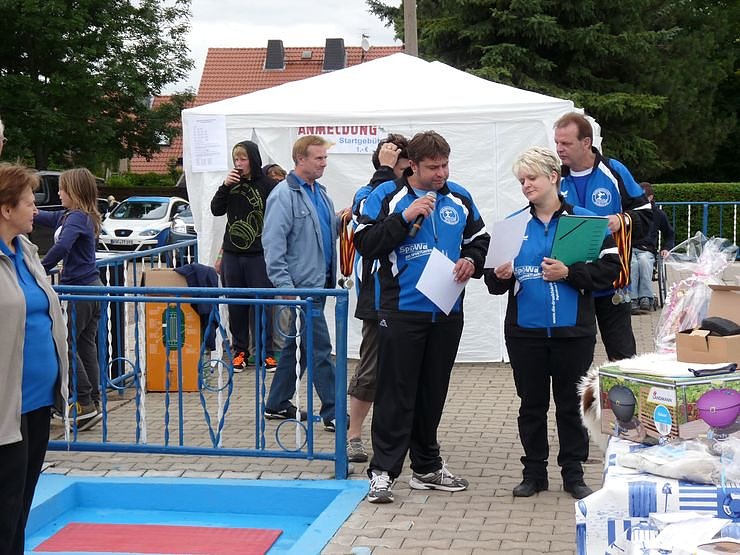 Aber geknickt war man beim Badesportverein e.V. Großfurra, um dessen Vereinsvorsitzenden detlef Wiegel, deshalb nicht. Trotzdem war es schade, dass das riesige Engagement der vielen Helfer und Sponsoren dieses Jahr nicht ganz so belohnt wurde, wie in den letzten Jahren. Aber die wieder tollen Einzelleistungen brachte die Augen aller Helfer zum glänzen, wie hier bei der Siegerehrung zu sehen ist, die Katharina und Markus Töppe leiteten.