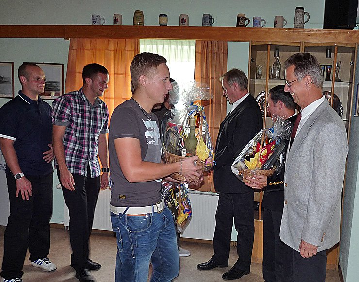 Von "seinen" Bergbautechnologen gab es einen extra Dank bei der Überreichung der Präsentkörbe für die Ausbilder.