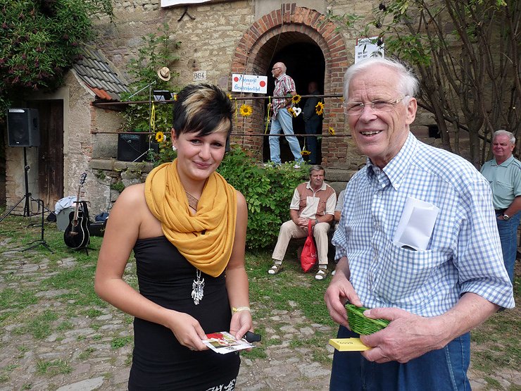 Nach der Eröffnung stellte Gutsherr Georg v Bismarck gegenüber kn die neue Zwiebelprinzessin Marie-Sophie I. vor, die in der Zeit von 2012 bis 2014 regieren wird. Wie es sich anfühlte, als Zwiebelprinzessin aufzutreten, konnte sie ermitteln, als sie im Januar mit dem Bürgermeister von Heldrungen die damals amtierende Zwiebelprinzessin vertrat.