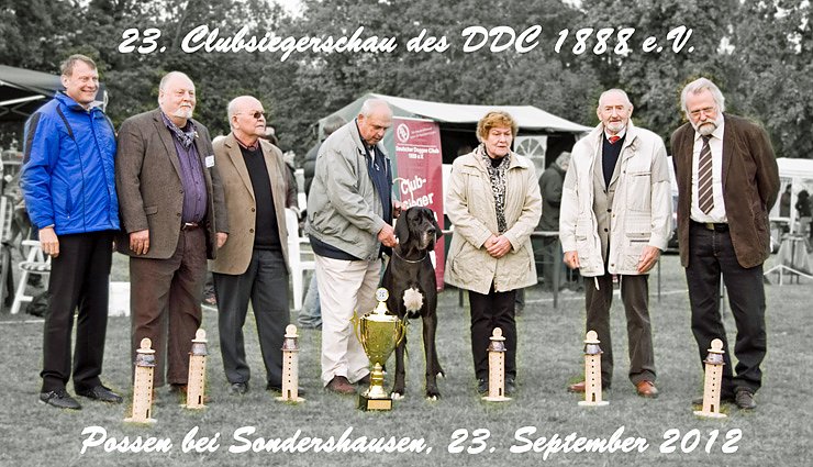 Zum 23. Mal und zum dritten Mal in Thüringen wurde am Sonntag den 23. September 2012 eine Clubsiegerschau des Deutschen Doggen Clubs durchgeführt. Eine organisatorisch hervorragend gelungene Veranstaltung, lobten der Bürgermeister der Stadt Sondershausen Herr Kreyer sowie die interessierten Gäste der Veranstaltung.