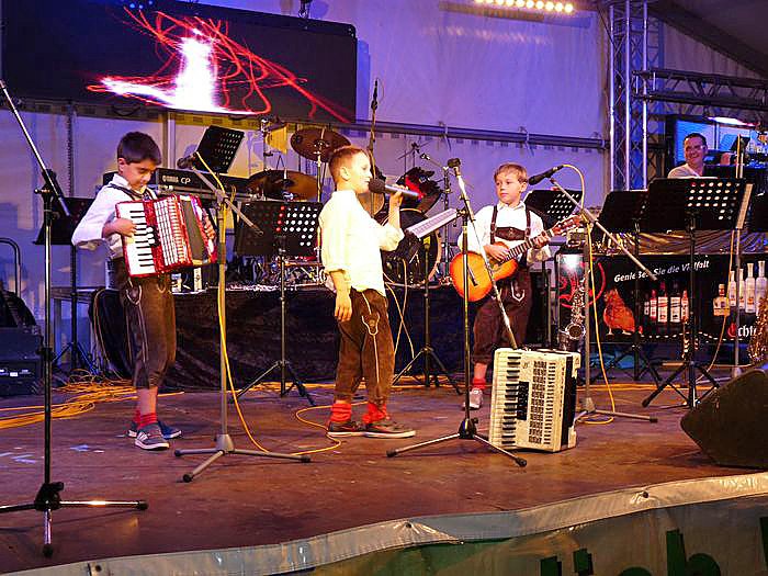 Viel Beifall gab es für die De Mini-Randfichten, bei denen der Holz-Michel nicht fehlen durfte. Die drei Jungs sangen live und brachten die Massen echt in Stimmung.