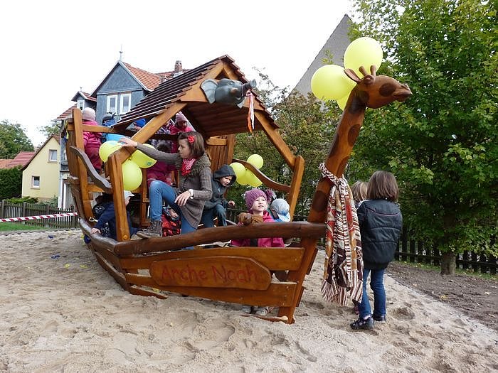 So ein richtig schönes Schiff weckt Begehrlichkeiten. Als in der evangelischen Kindereinrichtung Arche Noah Haus 1 in Sondershausen Stockhausen so eine schöne Arche "in Betrieb" genommen wurde, sagte man sich im Haus 2 in Großfurra, so ein Schiff müssen wir auch haben. Seit heute ist es Realität.
