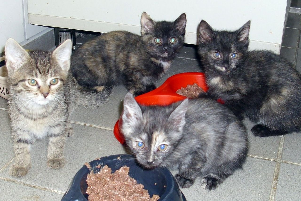 "Die jungen Katzen kamen kurz nach der Geburt zu uns ins Tierheim, da sie zusammen mit ihrer Mutter in einem Karton am Kiesschacht entsorgt wurden. Ein Katzenwelpe wurde dann noch per Kaiserschnitt geboren", berichtet Tierheimleiterin Cornelia Knust. Jetzt sind sie muntere kleine Katzen: Vier schildpattfarbene Mädels und zwei gestromte Katerchen. Mit ihren acht Wochen sind sie bereit, zu ihren neuen Menschen zu gehen.