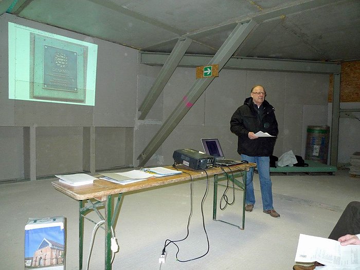 Herr Wytrieckus (Bild oben) berichtete über die Baustelle Bürgerzentrum, die Auszeichnung des Vereins mit dem thüringischen Denkmalschutzpreis, über die Spenden und über die Veranstaltungen, die es im vergangenen Jahr gab. Das Bürgerzentrum geht seiner Vollendung entgegen, vielleicht wird es nur noch wenige Jahre dauern.