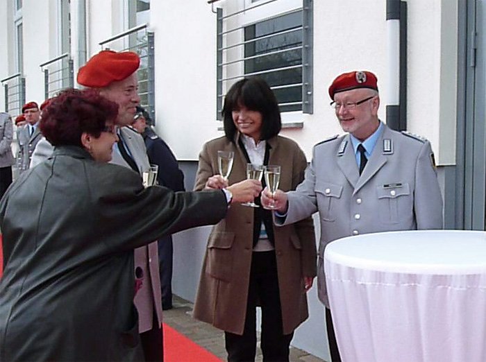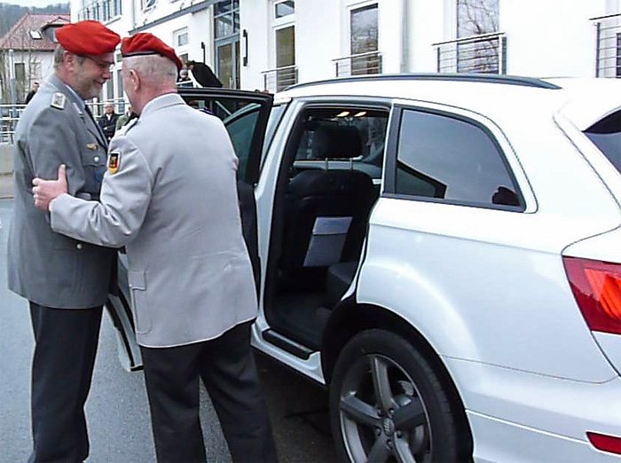 Kurz nach 13:00 Uhr war es ein letzter Handschlag und Oberstleutnant Marx wurde in einer weißen Limousine unter der "Bewachung" von zwei Fahrzeugen der Feldjäger aus der Karl-Günther-Kaserne geleitet. Zuvor durfte er allerdings nochmals anstoßen.