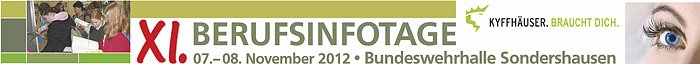 Die Berufs- und Studienwahl ist eine wesentliche Entscheidung für Jugendliche und junge Erwachsene nach der Schulzeit. Um ihnen den Einstieg in das Berufsleben mit der Wahl des richtigen Ausbildungs-, Praktikums oder Studienplatzes zu erleichtern, finden am 7. November 2012, in der Zeit von 10:00 -19:00 Uhr, und 8. November 2012, in der Zeit von 8:30- 14:00 Uhr, die 11. BerufsInfotage in der Bundeswehrhalle in Sondershausen statt, welche vom Landratsamt Kyffhäuserkreis, Büro der Landrätin, Regionale Wirtschaftsentwicklung, gemeinsam mit mehreren Partnern, organisiert werden.