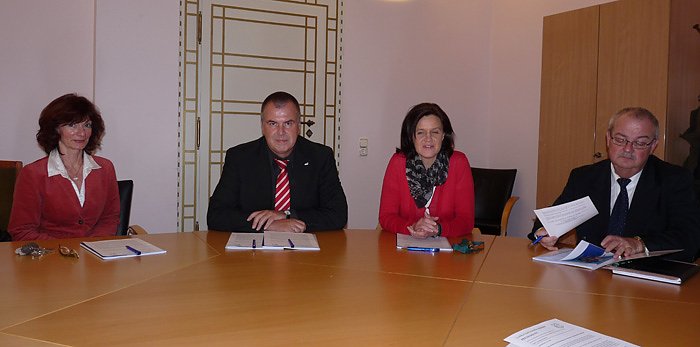Nach der Pressekonferenz stellten sich die Beteiligten, Roland Erdtmann von der Aufbaubank, Landrätin Antje Hochwind (SPD), Sören Hauskeller, Leiter des Bauverwaltungsamtes und Ute Bergner Landratsamt Kyffhäuserkreis (Baufinanzierung) der Kamera von kn.