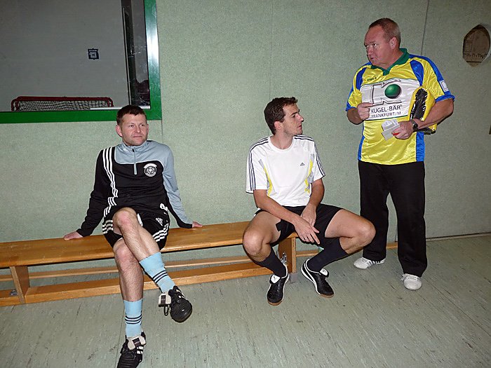 Autor: khhDie Kampfansage machte Coach Wolfgang Maresch (re.), hier bei Trainingsanweisungen, der dieses Jahr gleich zwei Mannschaften für die Isoplus Fernwärmetechnik GmbH ins Turnier schickt. Und er kann auf gute Spieler blicken, die dabei mittun. Der zweite Platz vom Vorjahr soll nochmals verbessert werden.