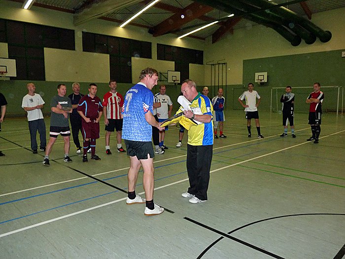 Zur besseren Motivation gab es für ein Geburtstagskind noch eine Aufmerksamkeit von der Firma. Der Coach hat seine Spieler auch schon mal in Mannschaften zusammengefasst. Wer die erste Mannschaft und wer die zweite Mannschaft ist, wird hier noch nicht verraten. Denn nach dem Training könnte sich das vielleicht noch ändern.