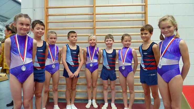 Florian Skirl, Richard Pauluhn, Fritz Heinrich Hüttner und Malte-Maxim Angelstein bildeten die Mannschaft für den SV "GA". Drei gute Wertungen punkten für die Mannschaft. Die Gesamtwertung an jedem Gerät gilt hier allerdings ab 10,00 Punkten. Unsere vier erreichten den 4. Platz hinter dem SV Schwarza, TsG Jena I, TSV Meiningen mit 0,80 Punkten Rückstand - leider. Die Enttäuschung sah man den Jungen an. In der Einzelwertung wurde Florian - das Geburtstagskind (2.) -,Richard (12.), Fritz Heinrich (14.) und Malte(20.) Auch Florian und Malte müssen im kommenden Jahr neue Übungen erlernen in einer höheren Altersklasse.
