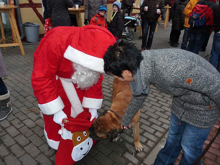 Sogar tierisch ging es zu. Der Inhalt interessiert den Vierbeiner weniger, aber offensichtlich das abgebildete Rentier, oder war es ein Elch? Dann machte sich kn wieder auf die Strümpfe, um auf der Rückfahrt mal bei den Handballern vorbei zu schauen. Aber darüber hatte kn ja bereits berichtet.