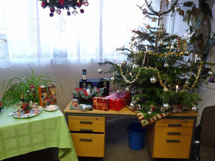 Autor: khhSchon vorher wurde der Raum liebevoll geschmückt. Natürlich war auch ein Weihnachtsbaum festlich geschmückt. Auf den weihnachtlich geschmückten Tisch stand für jeden Teilnehmer ein Weihnachtsteller bereit, mit mancher Nascherei.