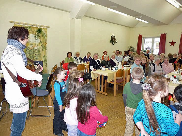 Neben bekannten Weihnachtsliedern zum Mitsingen waren auch einige neuartige Weihnachtslieder mit sehr hübschen Texten dabei, die auch bei den älteren Gästen sehr gut ankamen. So hieß es in einem Txt, auch die Achtzigjährigen sollen den Stiefel zum Nikolaustag rausstellen.