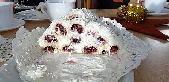"Holzscheit unter Schnee" gab es heute im HOC zum Kaffee. Die Frauen von zwei im HOC agierenden Zirkeln hatten sich zu einer Weihnachtsfeier getroffen, der Kreativ- und der Handarbeitszirkel. Und kreativ ging es schon beim selbst gebackenen Kuchen zu, So hatte Frau Bach eben diesen "Holzscheit unter Schnee" gebacken. Der Kuchen sah nicht nur sehr lecker aus, sondern er schmeckte sehr, sehr lecker!